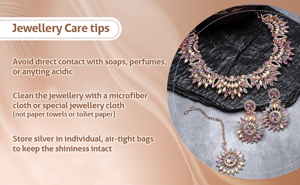 * Care Instruction : Avoid water contact, including swimming or bathing. Keep away from chemicals like perfumes and lotions. Store in a cool, dry place away from sunlight. Clean gently with a soft, lint-free cloth. Handle delicately to avoid bending or pulling. This will keep your jewellery shining for years.