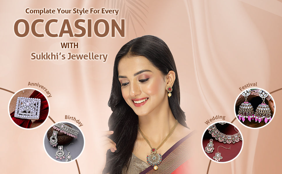 * Premium Quality Craftsmanship: Crafted with meticulous attention to detail, this Sukkhi jewellery set is made from high-quality materials, ensuring durability and long-lasting shine. The intricate craftsmanship showcases the brand's dedication to creating exquisite jewellery pieces.