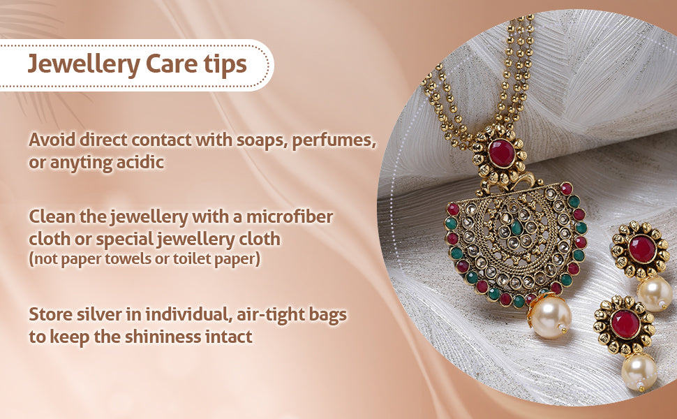 * Care Instruction : Avoid water contact, including swimming or bathing. Keep away from chemicals like perfumes and lotions. Store in a cool, dry place away from sunlight. Clean gently with a soft, lint-free cloth. Handle delicately to avoid bending or pulling. This will keep your jewellery shining for years.
