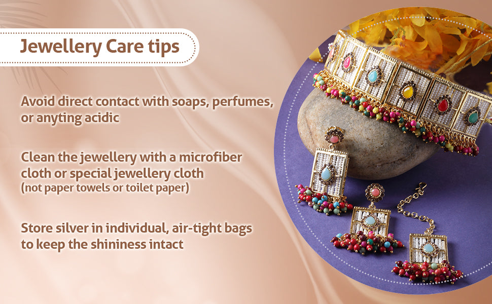 * Care Instruction : Avoid water contact, including swimming or bathing. Keep away from chemicals like perfumes and lotions. Store in a cool, dry place away from sunlight. Clean gently with a soft, lint-free cloth. Handle delicately to avoid bending or pulling. This will keep your jewellery shining for years.