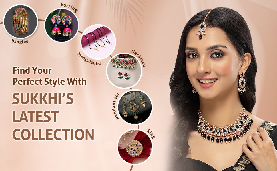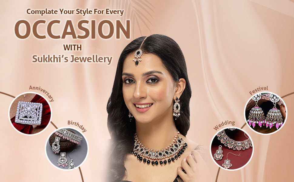 * Complete Jewellery Set: The Sukkhi Bright Gold Plated Black AD Black Stones With Drop Beads Collar Bone Necklace Earring with Maangtika Jewellery Set offers a complete ensemble for women who appreciate bold and sophisticated jewellery. It's a perfect choice for special occasions, parties, and elegant affairs, allowing you to make a statement with your unique and refined style.