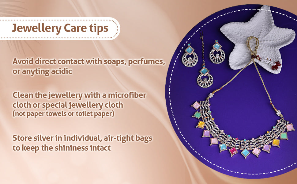 * Care Instruction : Avoid water contact, including swimming or bathing. Keep away from chemicals like perfumes and lotions. Store in a cool, dry place away from sunlight. Clean gently with a soft, lint-free cloth. Handle delicately to avoid bending or pulling. This will keep your jewellery shining for years.