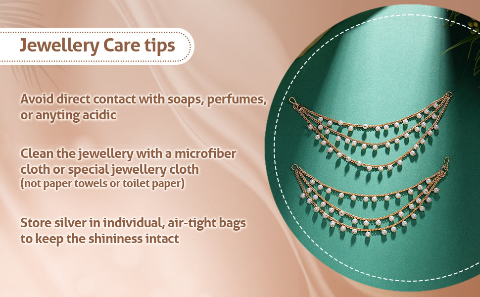 * Care Instruction : Avoid water contact, including swimming or bathing. Keep away from chemicals like perfumes and lotions. Store in a cool, dry place away from sunlight. Clean gently with a soft, lint-free cloth. Handle delicately to avoid bending or pulling. This will keep your jewellery shining for years.