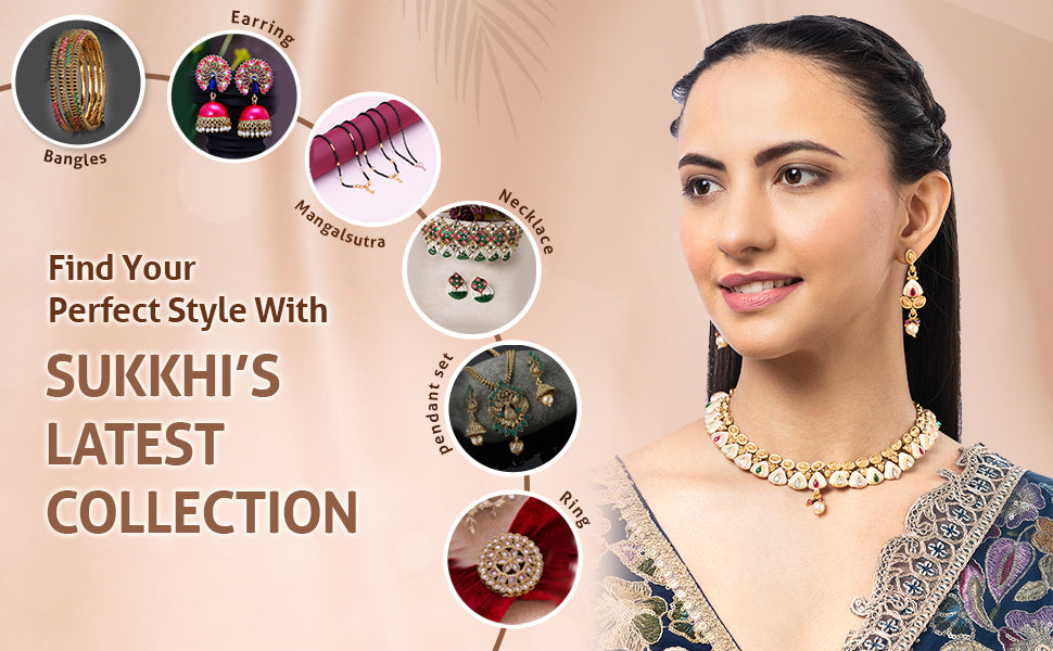 Sukkhi Classic-Inspired Kundan Studded with Meenark Work Gold Plated Choker Necklace With Dangle Earring Jewellery For Women|NS106977