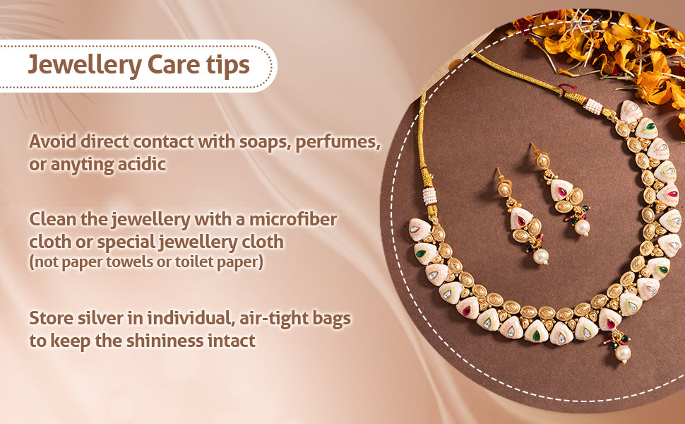 * Care Instruction : Avoid water contact, including swimming or bathing. Keep away from chemicals like perfumes and lotions. Store in a cool, dry place away from sunlight. Clean gently with a soft, lint-free cloth. Handle delicately to avoid bending or pulling. This will keep your jewellery shining for years.