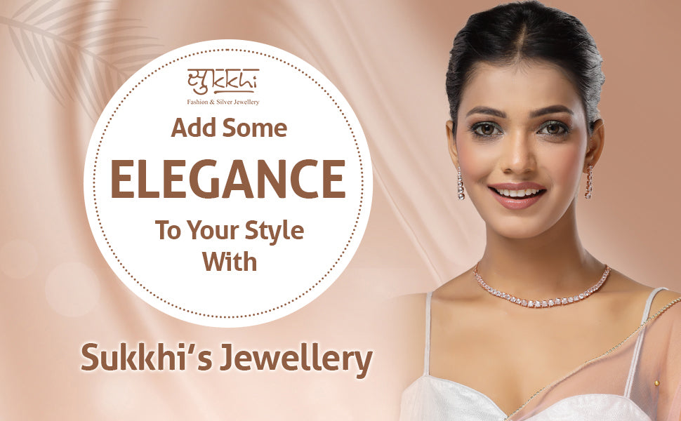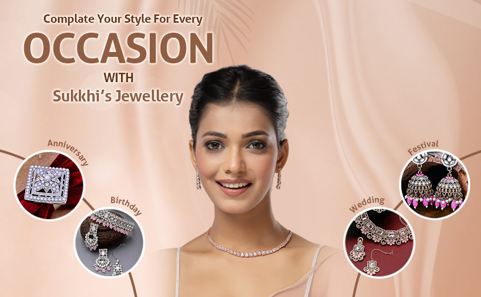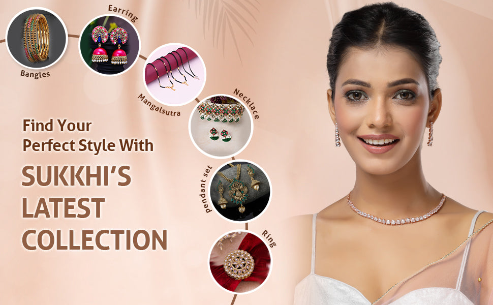 Sukkhi Classic Style American Diamond Studded Rose Gold Plated Handmade Circle Choker Necklace With Dangle Earrings Jewellery Set for Women & Girs|NS107427|Add a refined accent to your ensemble with this Sukkhi Classic Style Jewellery Set. Featuring a handmade rose gold plated circle choker necklace, it is adorned with shimmering American Diamonds that catch the light beautifully. The coordinated dangle earrings enhance the overall look, making it ideal for festive events, weddings, or evening parties. The unique circular pattern gives the piece a graceful yet modern feel. Crafted to complement both ethnic and contemporary outfits, this set offers an eye-catching finish without being too flashy. Designed for women and girls who enjoy timeless pieces with a modern flair.