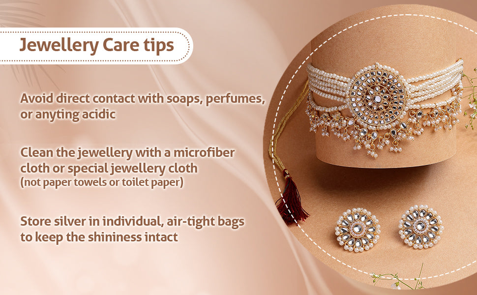 * Care Instruction : Avoid water contact, including swimming or bathing. Keep away from chemicals like perfumes and lotions. Store in a cool, dry place away from sunlight. Clean gently with a soft, lint-free cloth. Handle delicately to avoid bending or pulling. This will keep your jewellery shining for years.