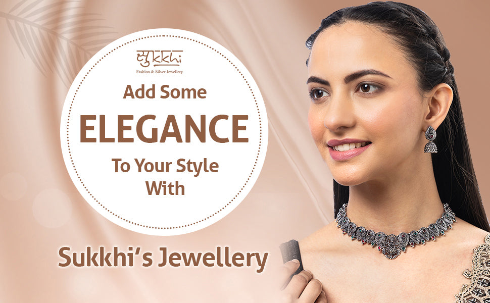 The Sukkhi Classical Laxmi Design Silver Oxidized Plated Choker Necklace Set with Jhumka Earrings is a stunning blend of traditional elegance and intricate craftsmanship. The choker features a beautiful Laxmi design, accented with oxidized silver plating that adds a timeless charm to any outfit. Paired with matching Jhumka earrings, this set enhances your ethnic look for weddings, festivals, or special occasions. The detailed design and fine finish make it a perfect choice for women and girls who love classic styles with a modern touch. This jewellery set is ideal for adding grace and sophistication to your collection.
