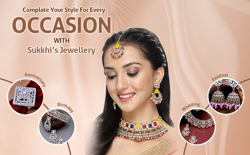 * Versatile Accessory: This Sukkhi jewelry set is versatile and suitable for various occasions, from weddings and cultural events to festive celebrations, making it a perfect choice for women who appreciate traditional and elegant jewelry. It's a classical and stylish accessory that allows you to embrace your cultural heritage with grace and sophistication while adding a pop of multicolor brilliance to your outfit.