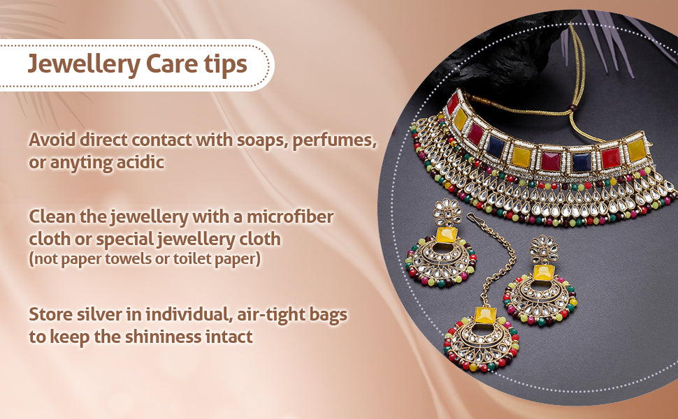 * Care Instruction : Avoid water contact, including swimming or bathing. Keep away from chemicals like perfumes and lotions. Store in a cool, dry place away from sunlight. Clean gently with a soft, lint-free cloth. Handle delicately to avoid bending or pulling. This will keep your jewellery shining for years.