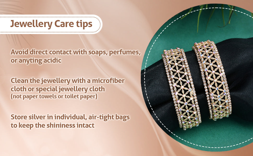 * Care Instruction : Avoid water contact, including swimming or bathing. Keep away from chemicals like perfumes and lotions. Store in a cool, dry place away from sunlight. Clean gently with a soft, lint-free cloth. Handle delicately to avoid bending or pulling. This will keep your jewellery shining for years.