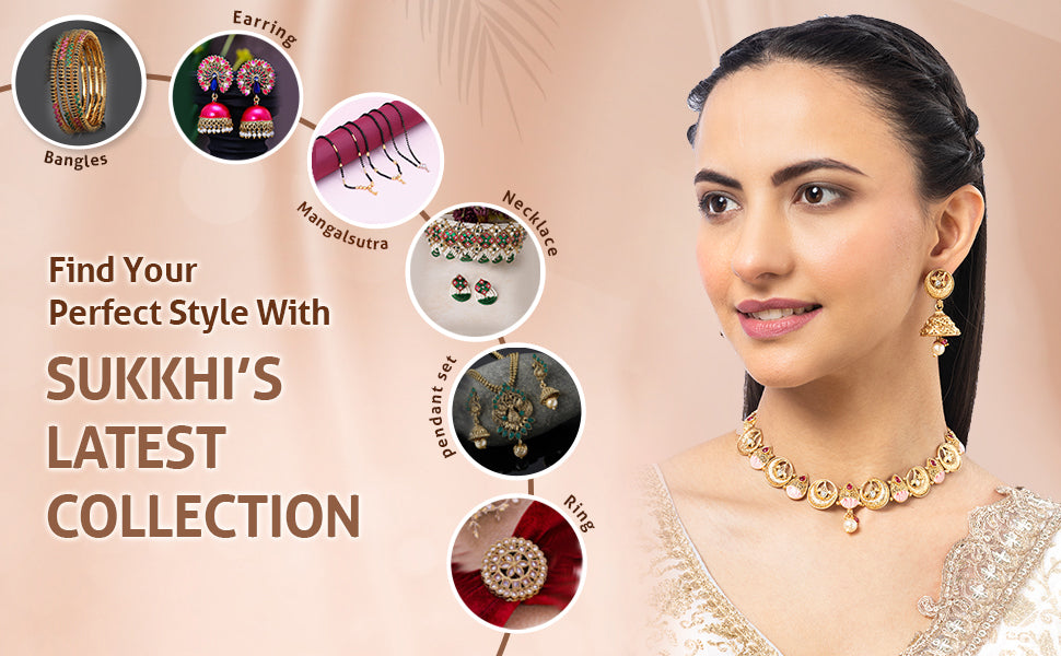 * Traditional Design: Sukkhi Gold Plated Choker Necklace Set features intricate Meenakari work, showcasing vibrant colors and detailed craftsmanship. Gold Plating: The elegant gold plating enhances the traditional appeal, making it ideal for pairing with sarees, lehengas, or ethnic wear.
