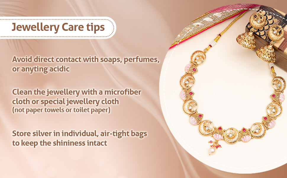 * Care Instruction : Avoid water contact, including swimming or bathing. Keep away from chemicals like perfumes and lotions. Store in a cool, dry place away from sunlight. Clean gently with a soft, lint-free cloth. Handle delicately to avoid bending or pulling. This will keep your jewellery shining for years.