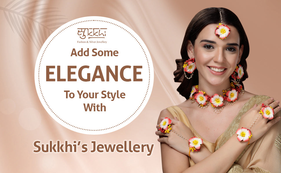 * Complete Ethnic Ensemble: This handmade floral jewellery set includes a necklace, matching earrings, bracelet, and maangtikka — offering a cohesive look for traditional ceremonies.
