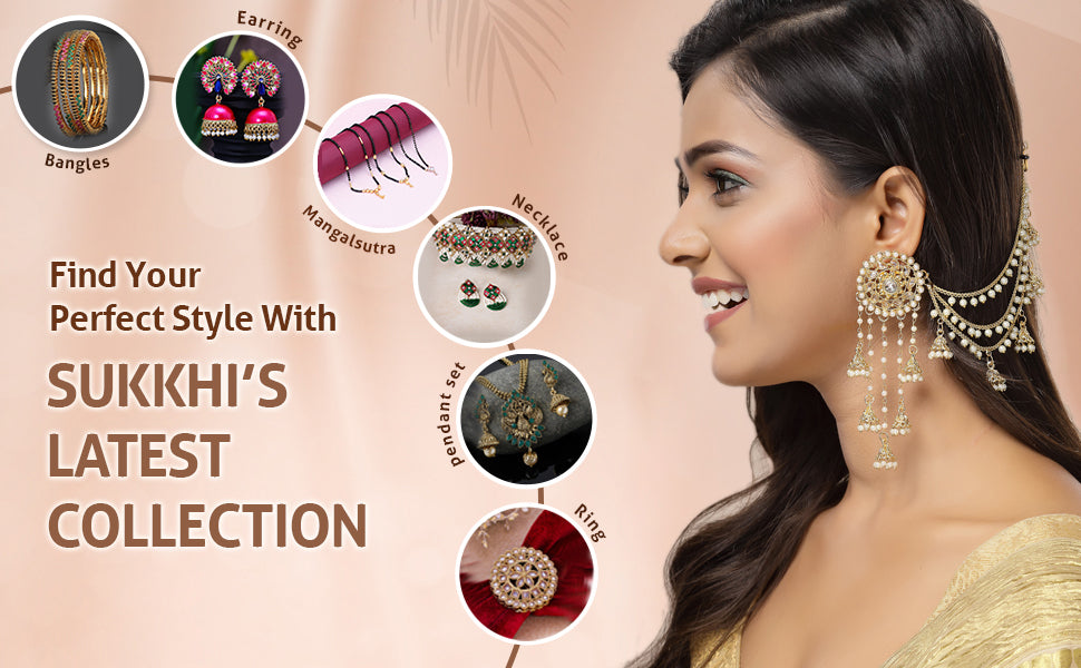 Sukkhi Creative Traditional Indian Fashion Gold Plated Multi Layer Pearls Ear Chain with Jhumka/Jhumki Earring Jewellery for Women & Girls|E107327|Enhance your traditional look with the Sukkhi Creative Traditional Indian Gold Plated Multi-Layer Pearls Ear Chain with Jhumka Earrings. This stunning set combines elegant multi-layer pearl chains with classic jhumka designs, creating a unique and graceful accessory. The gold plating adds warmth to the intricate craftsmanship, making it ideal for weddings, festivals, and cultural celebrations. Perfect for women and girls who appreciate timeless Indian fashion, this ear chain set brings a blend of sophistication and charm to any ethnic outfit. Wear it to add a delicate yet striking touch that highlights your style and heritage beautifully.