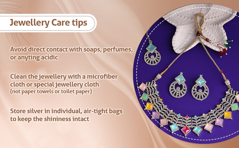 * Care Instruction : Avoid water contact, including swimming or bathing. Keep away from chemicals like perfumes and lotions. Store in a cool, dry place away from sunlight. Clean gently with a soft, lint-free cloth. Handle delicately to avoid bending or pulling. This will keep your jewellery shining for years.