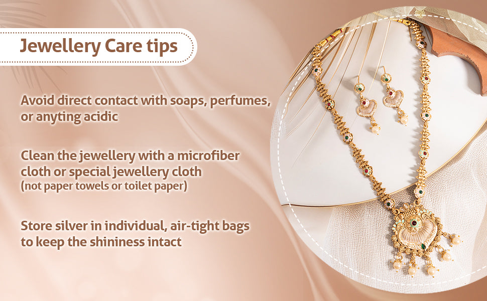 * Care Instruction : Avoid water contact, including swimming or bathing. Keep away from chemicals like perfumes and lotions. Store in a cool, dry place away from sunlight. Clean gently with a soft, lint-free cloth. Handle delicately to avoid bending or pulling. This will keep your jewellery shining for years.