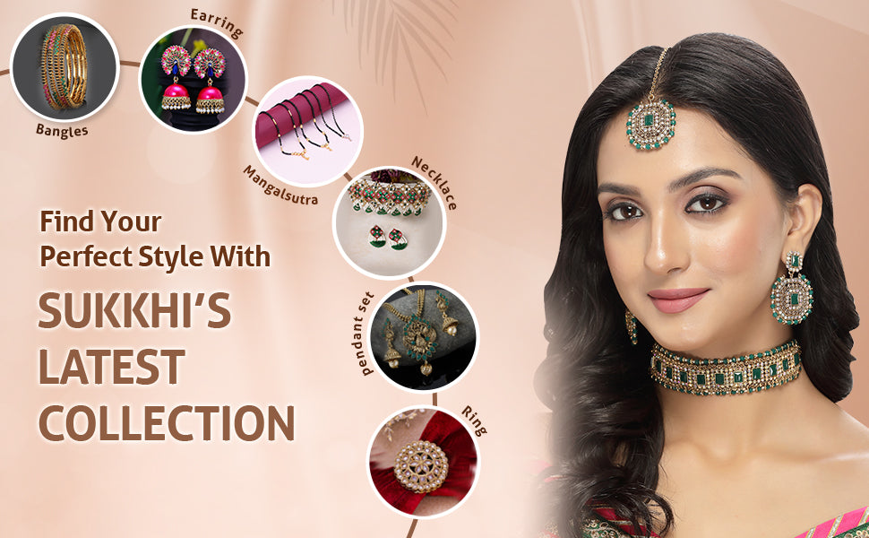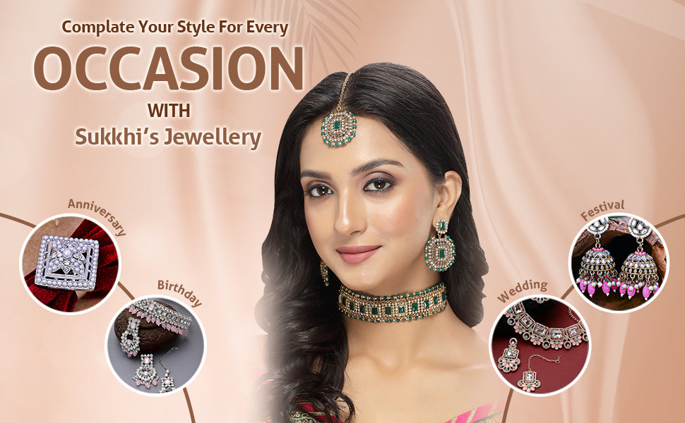 * Complete Jewelry Ensemble: With a coordinated choker necklace, earrings, and Maangtika, this Sukkhi jewellery set offers a well-matched and complete ensemble, suitable for weddings, festivals, and special occasions.