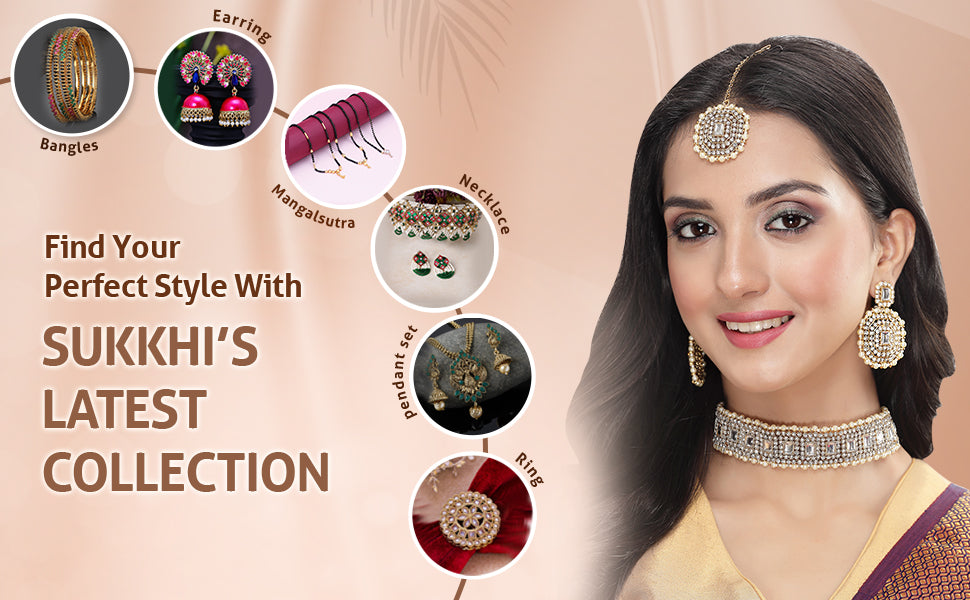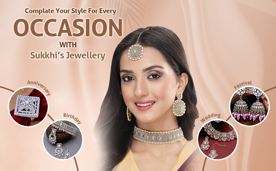 * Complete Jewelry Ensemble: With a coordinated choker necklace, earrings, and Maangtika, this Sukkhi jewellery set offers a well-matched and complete ensemble, suitable for weddings, festivals, and special occasions.