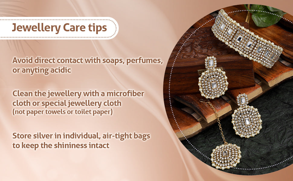 * Care Instruction : Avoid water contact, including swimming or bathing. Keep away from chemicals like perfumes and lotions. Store in a cool, dry place away from sunlight. Clean gently with a soft, lint-free cloth. Handle delicately to avoid bending or pulling. This will keep your jewellery shining for years.