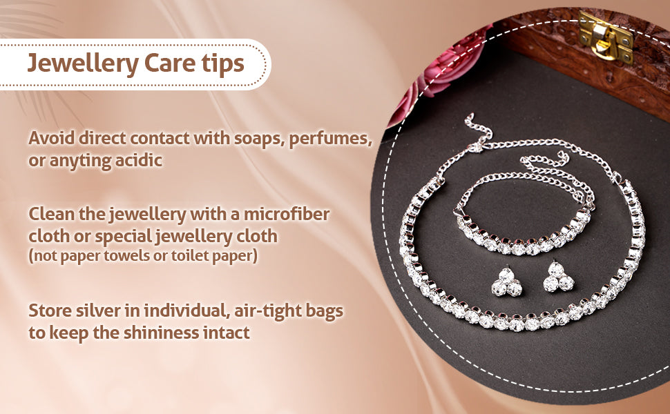 * Care Instruction : Avoid water contact, including swimming or bathing. Keep away from chemicals like perfumes and lotions. Store in a cool, dry place away from sunlight. Clean gently with a soft, lint-free cloth. Handle delicately to avoid bending or pulling. This will keep your jewellery shining for years.