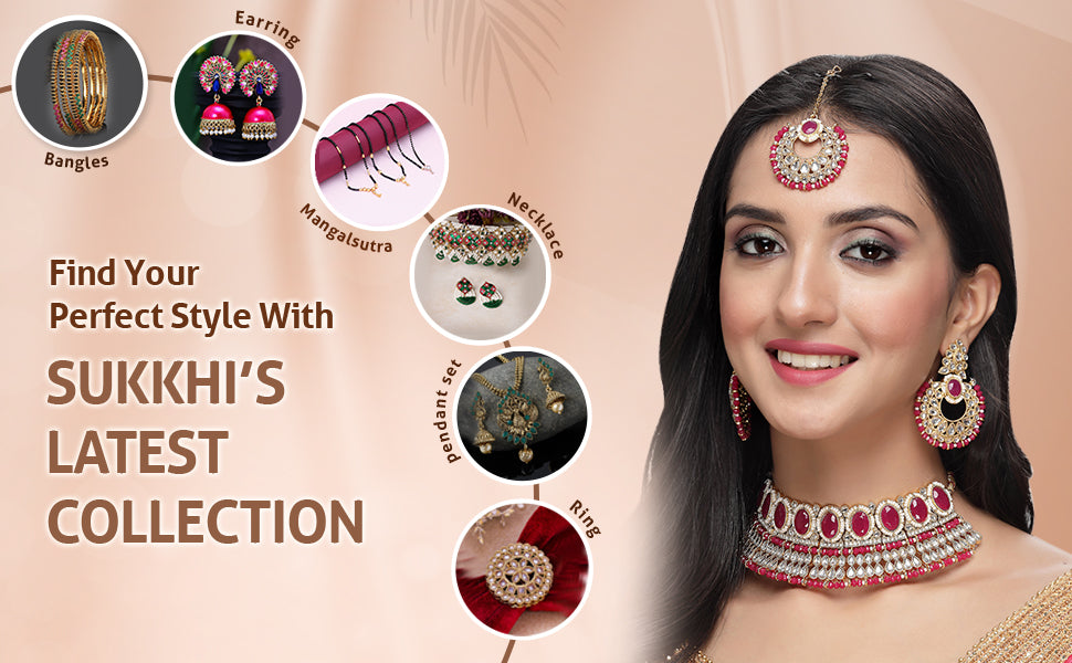 * Perfectly Coordinated: With a well-matched choker necklace, earrings, and Maangtika, this Sukkhi jewellery set provides a complete and coordinated look, ideal for weddings, parties, and special occasions.