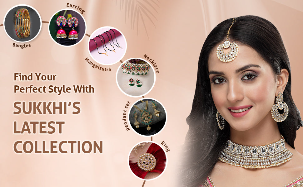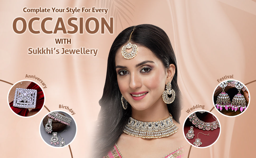 * Complete Set: With a coordinated choker necklace, earrings, and Maangtika, this Sukkhi jewellery set offers a complete and well-matched ensemble, suitable for weddings, festive occasions, and special celebrations.