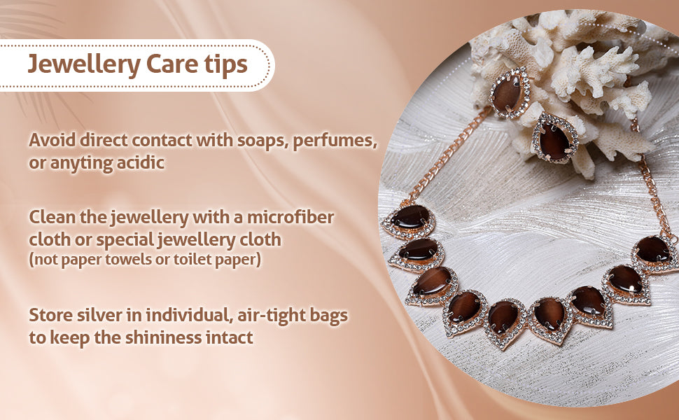 * Care Instruction : Avoid water contact, including swimming or bathing. Keep away from chemicals like perfumes and lotions. Store in a cool, dry place away from sunlight. Clean gently with a soft, lint-free cloth. Handle delicately to avoid bending or pulling. This will keep your jewellery shining for years.