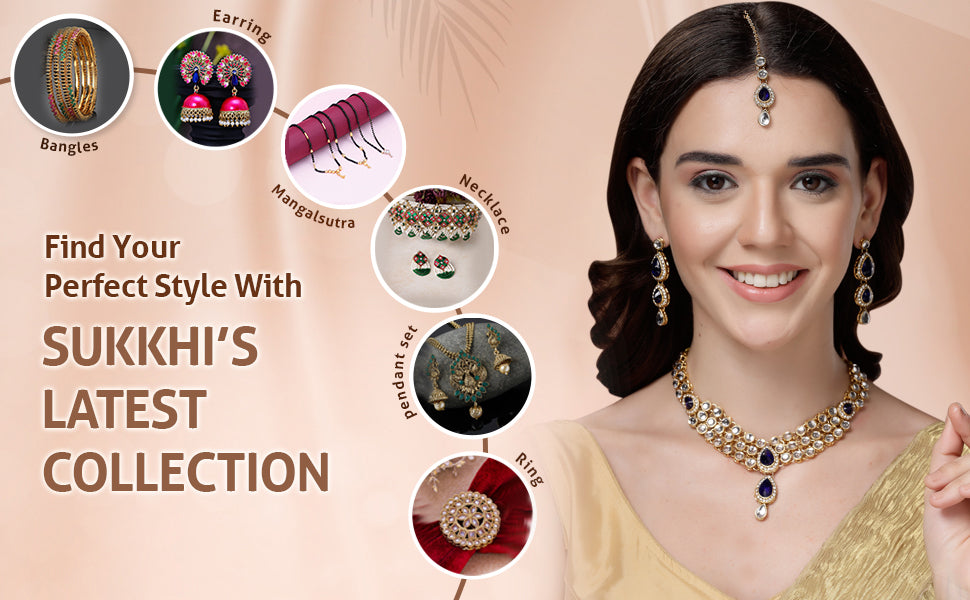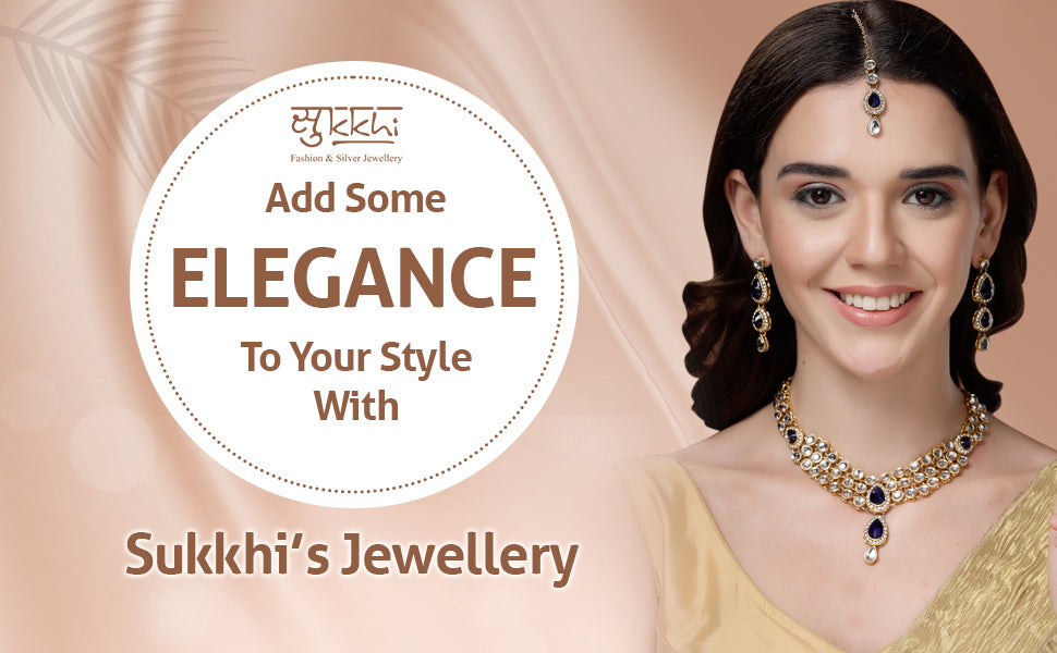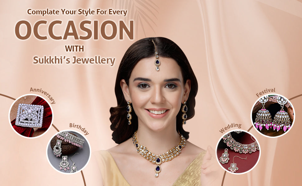 Sukkhi Elegant Stylish Gold Plated Kundan Studded Blue Choker Necklace with Drop Earring Maangtikka Jewellery Set for Women & Girls|NS107370|Make a striking impression with the Sukkhi Elegant Stylish Gold Plated Kundan Studded Blue Choker Necklace Set. This beautifully crafted jewellery set features a rich blue choker adorned with sparkling Kundan stones, paired with matching drop earrings and a delicate maangtikka. Designed for women and girls who appreciate refined details and festive flair, this set enhances any traditional or party ensemble. Whether it’s a wedding, celebration, or cultural event, the vivid hues and detailed craftsmanship add a graceful charm. Perfect as a thoughtful gift or a statement piece for your own collection, this set brings tradition to life with style.