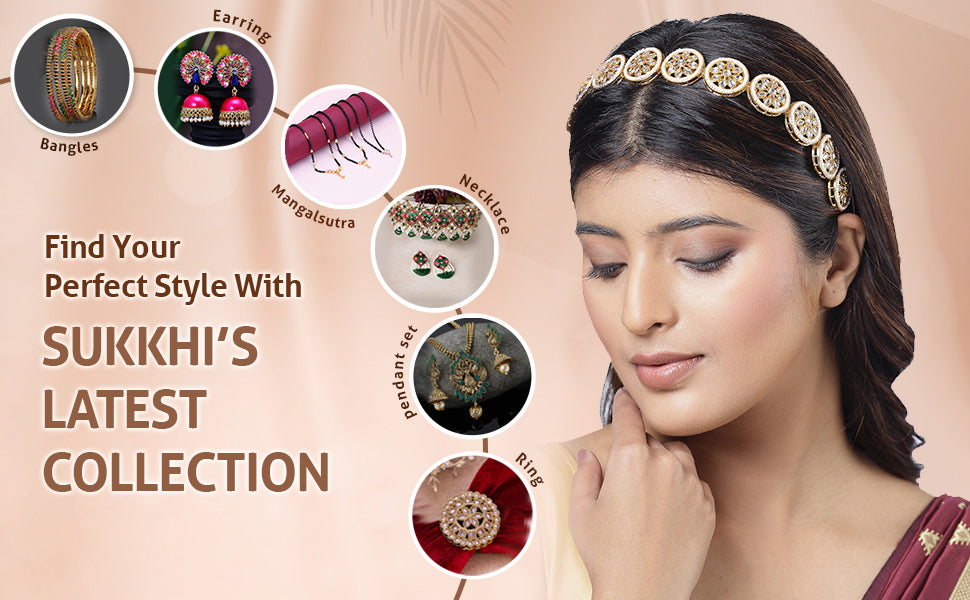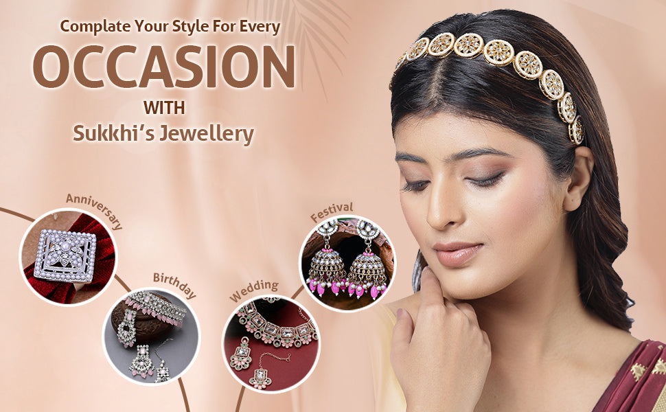 * Elegant Design: Sukkhi's gold-plated round beaded hairband Matha Patti adds a traditional touch, enhancing your ethnic look.Gold Plating: The shimmering gold plating ensures a radiant appeal, making it ideal for weddings, festivals, and special events.