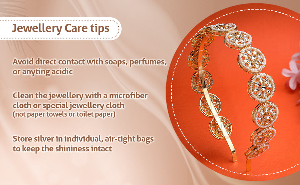 * Care Instruction : Avoid water contact, including swimming or bathing. Keep away from chemicals like perfumes and lotions. Store in a cool, dry place away from sunlight. Clean gently with a soft, lint-free cloth. Handle delicately to avoid bending or pulling. This will keep your jewellery shining for years.