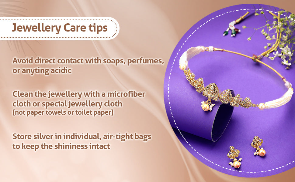 * Care Instruction : Avoid water contact, including swimming or bathing. Keep away from chemicals like perfumes and lotions. Store in a cool, dry place away from sunlight. Clean gently with a soft, lint-free cloth. Handle delicately to avoid bending or pulling. This will keep your jewellery shining for years.