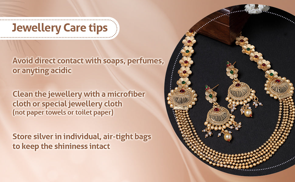 * Care Instruction : Avoid water contact, including swimming or bathing. Keep away from chemicals like perfumes and lotions. Store in a cool, dry place away from sunlight. Clean gently with a soft, lint-free cloth. Handle delicately to avoid bending or pulling. This will keep your jewellery shining for years.