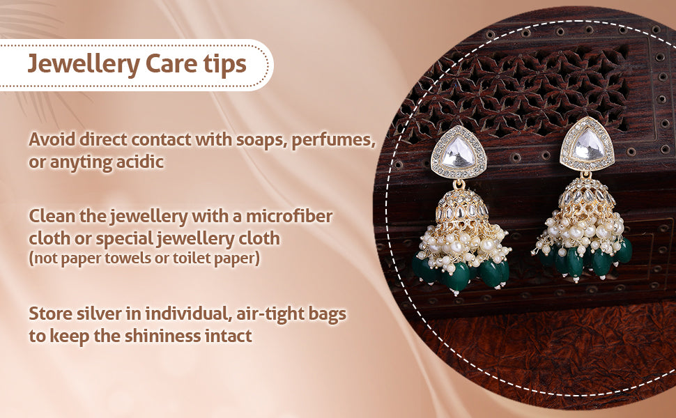* Care Instruction : Avoid water contact, including swimming or bathing. Keep away from chemicals like perfumes and lotions. Store in a cool, dry place away from sunlight. Clean gently with a soft, lint-free cloth. Handle delicately to avoid bending or pulling. This will keep your jewellery shining for years.