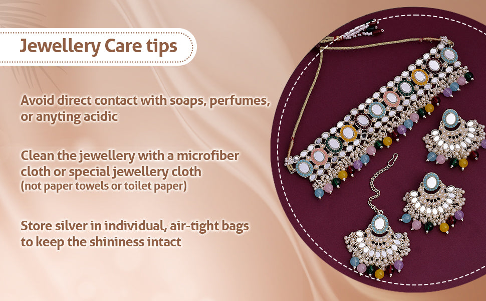 * Care Instruction : Avoid water contact, including swimming or bathing. Keep away from chemicals like perfumes and lotions. Store in a cool, dry place away from sunlight. Clean gently with a soft, lint-free cloth. Handle delicately to avoid bending or pulling. This will keep your jewellery shining for years.