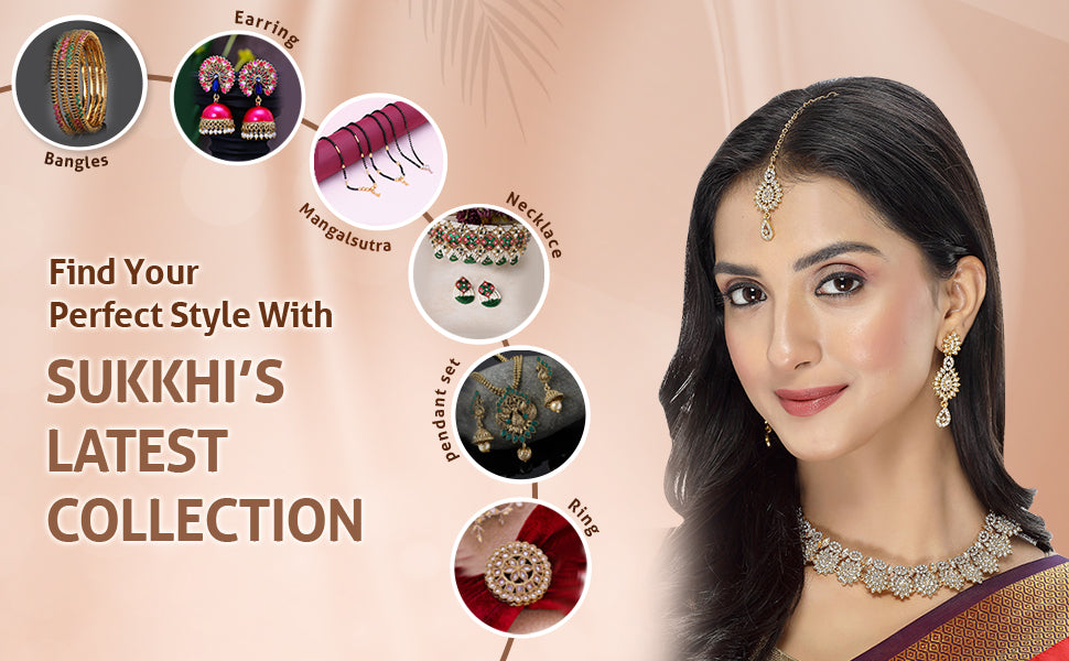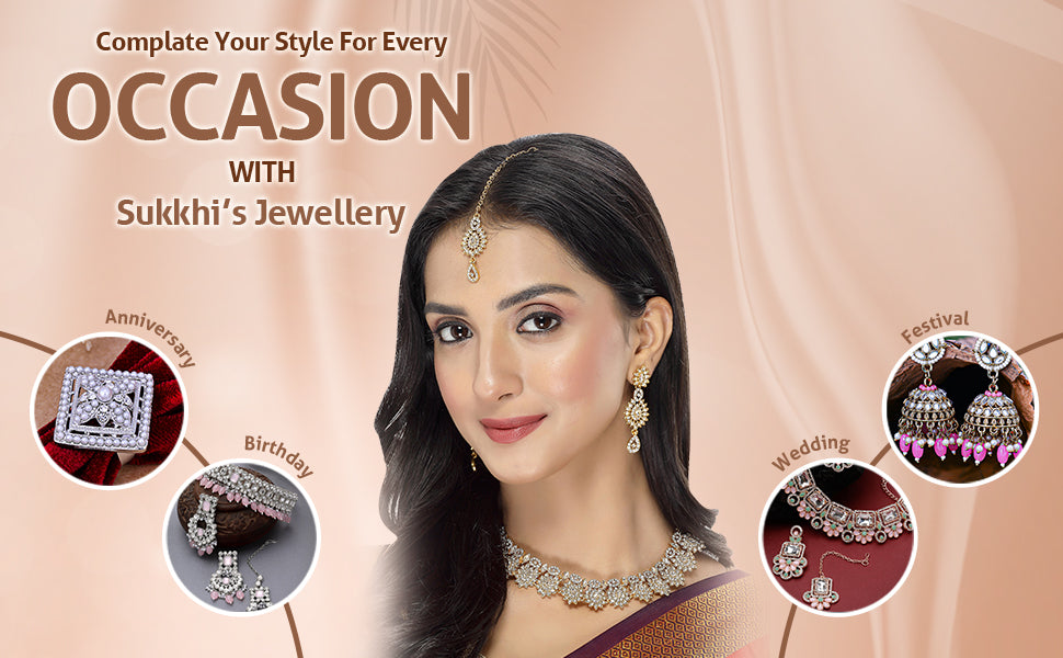 * Complete Ensemble: The Sukkhi jewelry set includes a captivating collar bone necklace, complementing earrings, and a maangtika, providing a complete and coordinated look for a glamorous and sophisticated appearance.