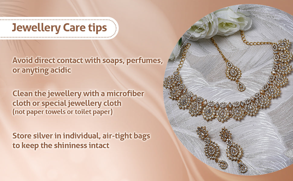 * Care Instruction : Avoid water contact, including swimming or bathing. Keep away from chemicals like perfumes and lotions. Store in a cool, dry place away from sunlight. Clean gently with a soft, lint-free cloth. Handle delicately to avoid bending or pulling. This will keep your jewellery shining for years.