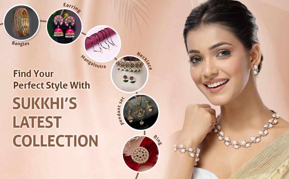 Sukkhi Eye-Catchy Stylish Design Gold Plated Faux Pearls Studded White Choker Necklace with Studs Earring & Bracelet Combo Jewellery Set For Women & Girls|CBMIX107315|Make a lasting impression with the Sukkhi Eye-Catchy Stylish Gold Plated White Choker Necklace Set. This elegant combo features a choker necklace studded with faux pearls, paired with matching studs earrings and a bracelet. The gold-plated finish adds a subtle warmth, enhancing the refined design. Perfect for festive events, parties, or traditional celebrations, this set complements ethnic and contemporary outfits alike. Crafted for women and girls who enjoy stylish yet classic accessories, it offers a balanced blend of charm and sophistication. Add this versatile jewellery set to your collection for a graceful and polished look on any occasion.