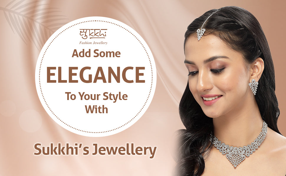 Elevate your elegance with the Sukkhi Fanciable Rhodium Plated Silver AD White Stone Collar Bone Necklace Earring with Maangtika Jewellery Set. This exquisite set captivates with a collar bone necklace adorned with sparkling white AD stones in a radiant rhodium-plated setting. The design exudes grace and sophistication, adding a touch of timeless allure to your look. The matching earrings and maangtika (forehead ornament) complete the ensemble, creating a stunning and cohesive jewelry set. Plated in resplendent rhodium, this jewelry set seamlessly blends classic design with a hint of luxury. Whether it's a wedding, party, or any special occasion, the Sukkhi jewelry set will make you stand out with its captivating beauty and poise. A must-have addition to every woman's cherished collection, defining grace and versatility in style.