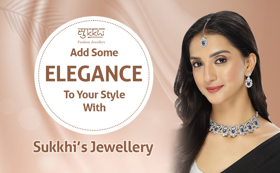 Indulge in elegance with the Sukkhi Fancy Rhodium Plated Blue AD Stone Collar Bone Necklace Earring with Maangtika Jewellery Set. This exquisite set captivates with a collar bone necklace adorned with sparkling blue AD stones in a radiant rhodium-plated setting. The design exudes grace and sophistication, adding a touch of timeless allure to your look. The matching earrings and maangtika (forehead ornament) complete the ensemble, creating a stunning and cohesive jewelry set. Plated in resplendent rhodium, this jewelry set seamlessly blends classic design with a hint of luxury. Elevate your style with the Sukkhi jewelry set, and make a statement with its captivating beauty and poise. A must-have addition to every woman's cherished collection, defining grace and versatility in style.