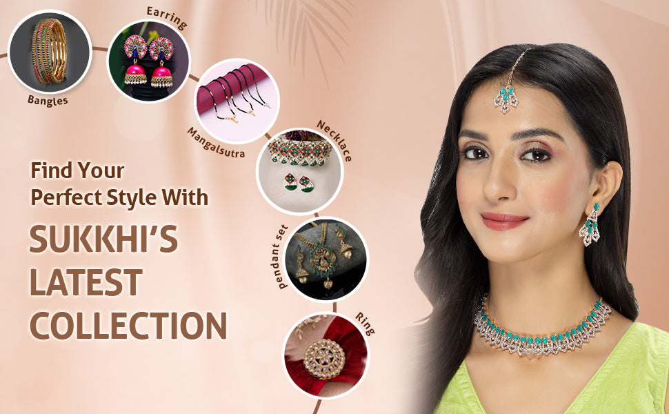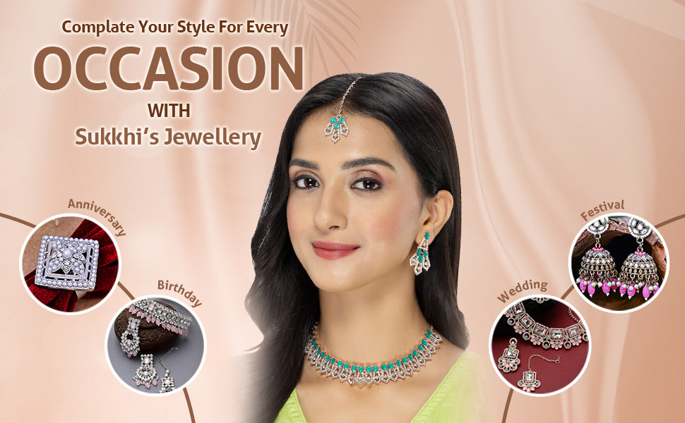 * Complete Jewelry Ensemble: With a coordinated collar bone necklace, earrings, and Maangtika, this Sukkhi jewellery set provides a well-matched and complete ensemble, suitable for weddings, parties, and special occasions.