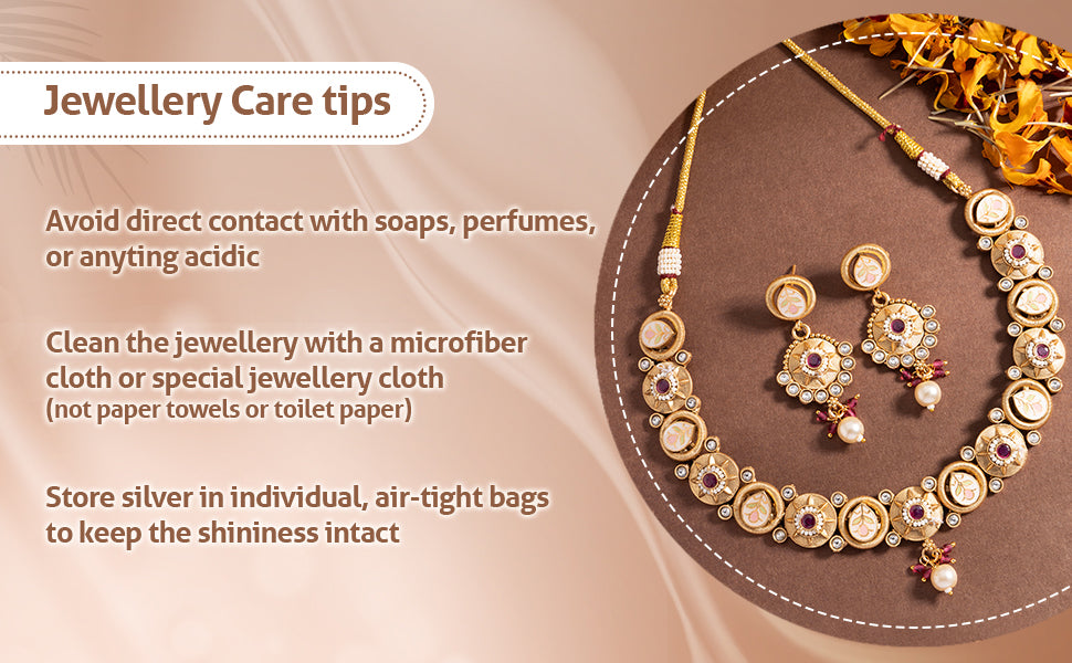 * Care Instruction : Avoid water contact, including swimming or bathing. Keep away from chemicals like perfumes and lotions. Store in a cool, dry place away from sunlight. Clean gently with a soft, lint-free cloth. Handle delicately to avoid bending or pulling. This will keep your jewellery shining for years.