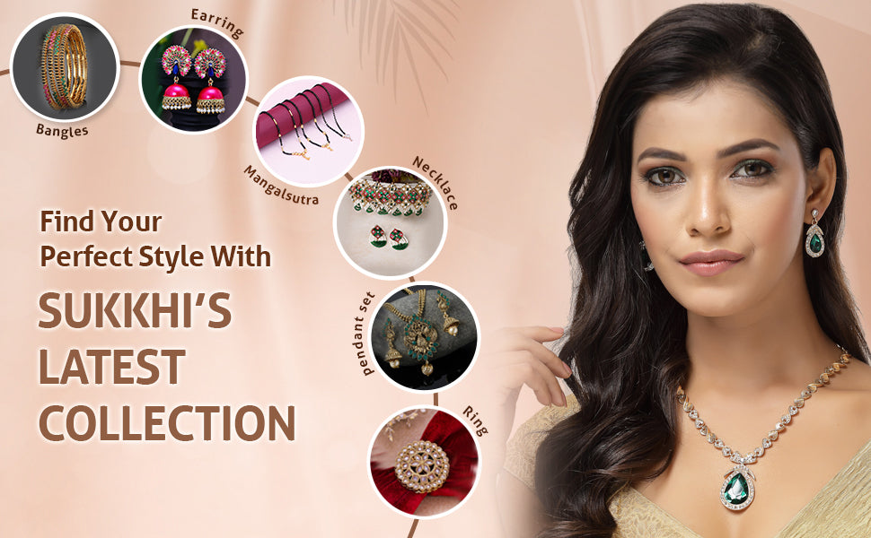 Sukkhi Flawless Fashion Design Gold Plated AD Stones Studded Green Choker Necklace with Drop Earrings Jewellery Set for Women & Girls|NS107383|Make a statement with the Sukkhi Flawless Fashion Jewellery Set featuring a gold-plated green choker necklace embellished with sparkling AD Stones. This set includes matching drop earrings that perfectly complement the necklace, creating a coordinated and elegant look. Designed for women and girls, it is ideal for special occasions, parties, or festive events. The vibrant green tones paired with shining AD Stones add a fresh and eye-catching appeal. Crafted with attention to detail, this jewellery set offers a stylish and graceful way to enhance your outfit and celebrate your unique style.