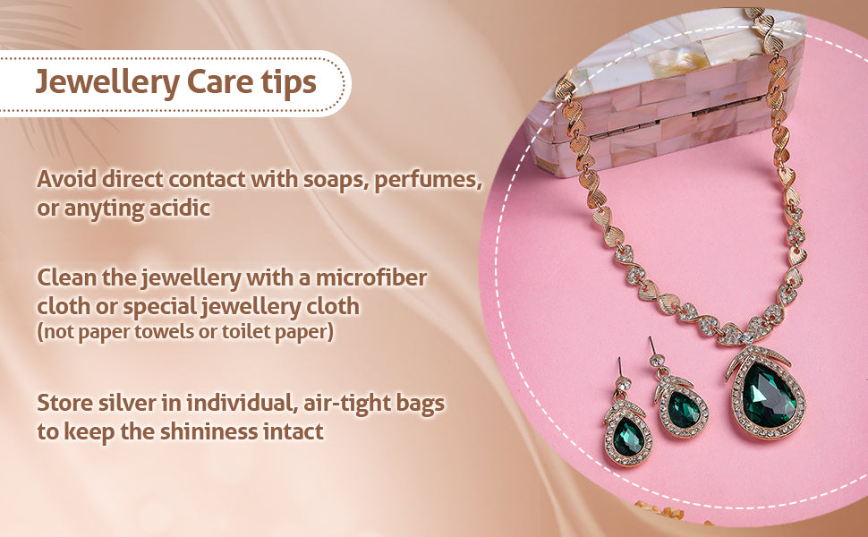 * Care Instruction : Avoid water contact, including swimming or bathing. Keep away from chemicals like perfumes and lotions. Store in a cool, dry place away from sunlight. Clean gently with a soft, lint-free cloth. Handle delicately to avoid bending or pulling. This will keep your jewellery shining for years.