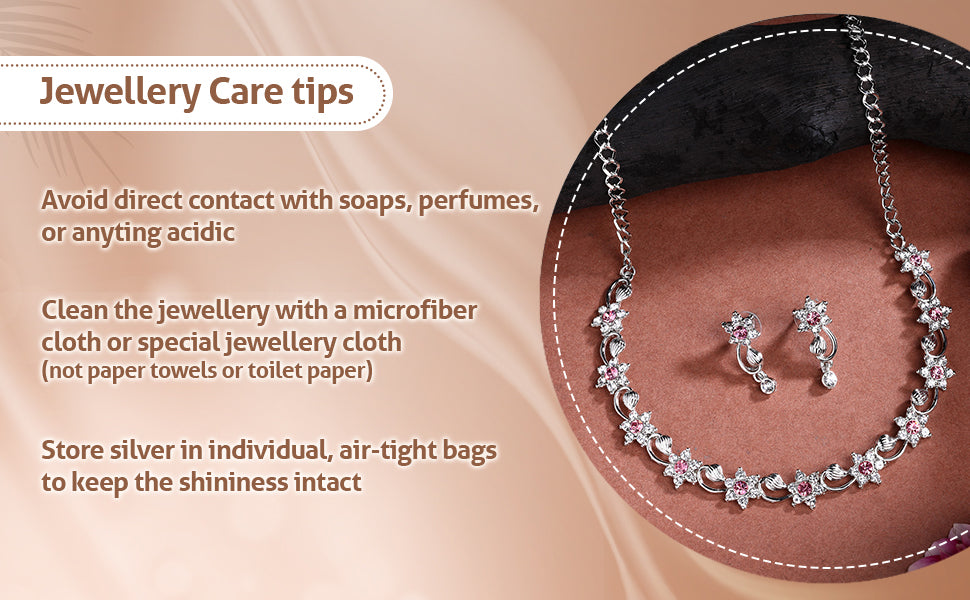 * Care Instruction : Avoid water contact, including swimming or bathing. Keep away from chemicals like perfumes and lotions. Store in a cool, dry place away from sunlight. Clean gently with a soft, lint-free cloth. Handle delicately to avoid bending or pulling. This will keep your jewellery shining for years.