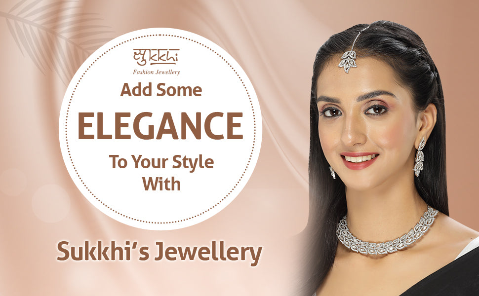 Discover the fusion of modern and traditional with the Sukkhi Fusion Rhodium Plated Silver AD White Stone Collar Bone Necklace Earring with Maangtika Jewellery Set. This exquisite set captivates with a collar bone necklace adorned with sparkling white AD stones in a radiant rhodium-plated setting. The design exudes grace and sophistication, adding a touch of timeless allure to your look. The matching earrings and maangtika (forehead ornament) complete the ensemble, creating a stunning and cohesive jewelry set. Plated in resplendent rhodium, this jewelry set seamlessly blends contemporary design with a hint of luxury. Whether it's a wedding, party, or any special occasion, the Sukkhi jewelry set will make you stand out with its captivating beauty and poise. A must-have addition to every woman's cherished collection, defining grace and versatility in style.