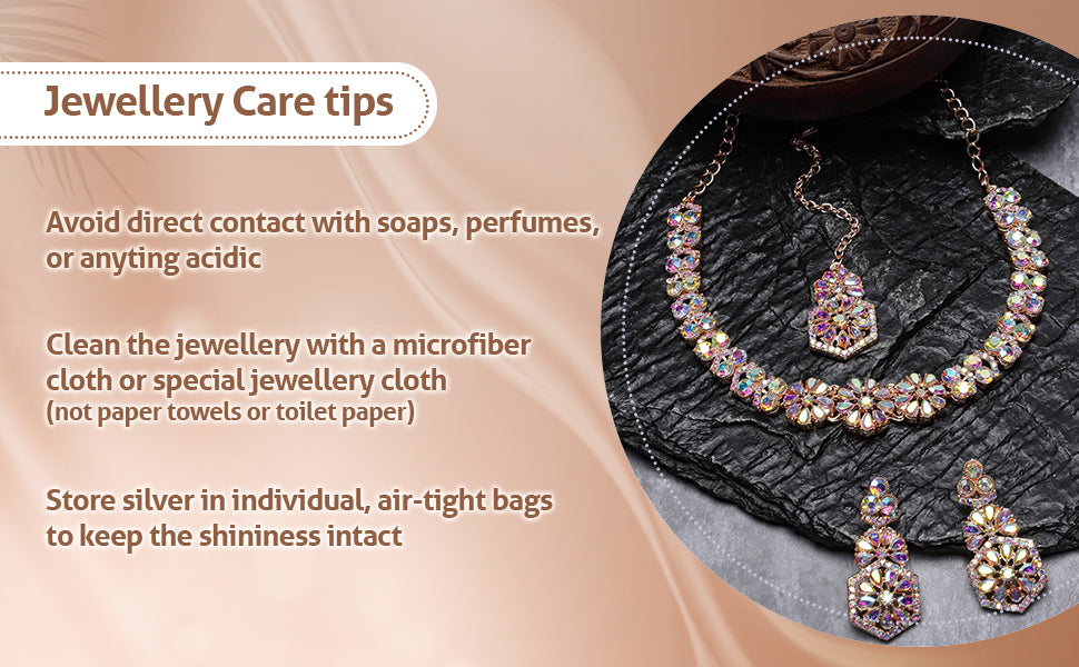 * Care Instruction : Avoid water contact, including swimming or bathing. Keep away from chemicals like perfumes and lotions. Store in a cool, dry place away from sunlight. Clean gently with a soft, lint-free cloth. Handle delicately to avoid bending or pulling. This will keep your jewellery shining for years.