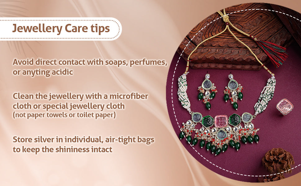 * Care Instruction : Avoid water contact, including swimming or bathing. Keep away from chemicals like perfumes and lotions. Store in a cool, dry place away from sunlight. Clean gently with a soft, lint-free cloth. Handle delicately to avoid bending or pulling. This will keep your jewellery shining for years.