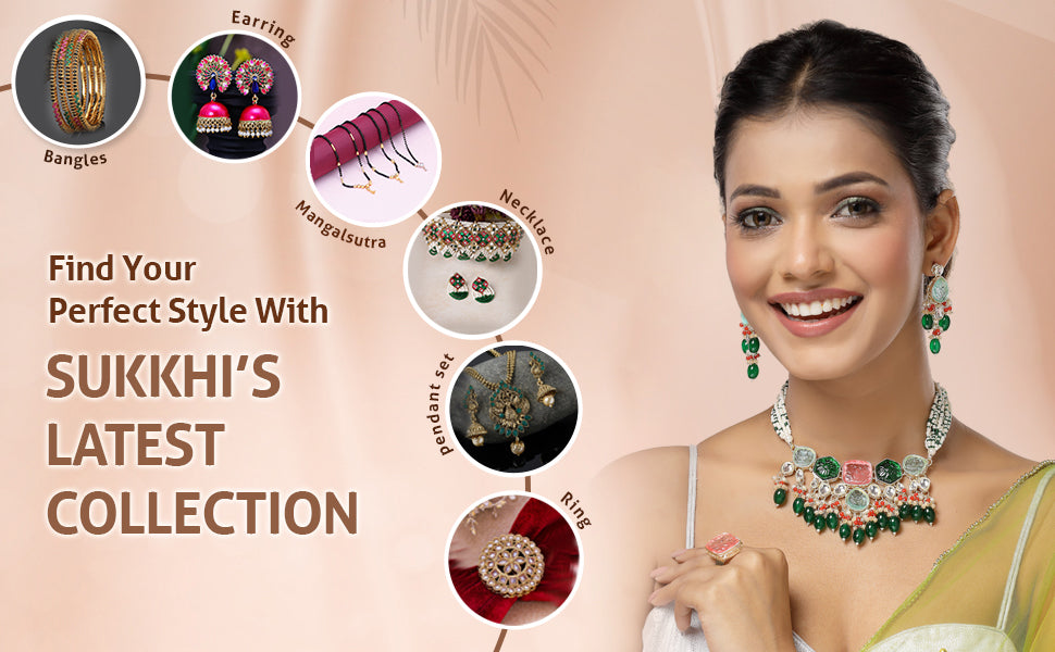 Sukkhi Glamorous Fashion Style Gold Plated Multicolor Stones & Beads Multistrand Beads Kundan Choker Necklace with Drop Earring & Ring Jewellery Set For Women & Girls|NS107357 Add a vibrant touch to your collection with the Sukkhi Glamorous Gold Plated Jewellery Set. Featuring a multistrand choker necklace adorned with multicolor stones, beads, and Kundan work, this set exudes festive charm. Complemented by matching drop earrings and a ring, it creates a coordinated and striking look perfect for weddings and celebrations. Crafted for women and girls who love bold and colorful accessories, the intricate design blends traditional artistry with contemporary flair. This set is a stunning choice to elevate your ethnic outfits and make a lasting impression at any special occasion.