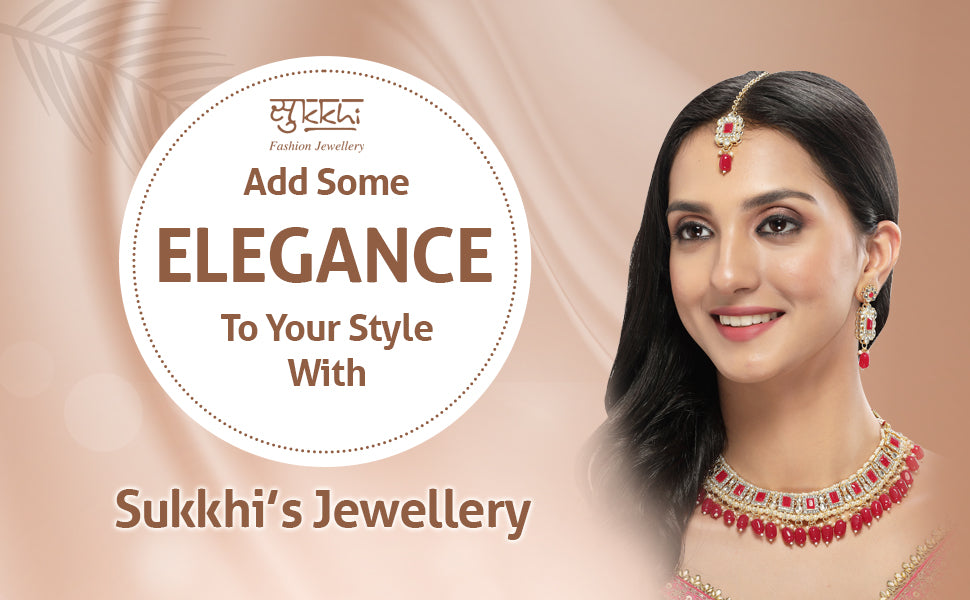 Step into the world of glamour with the Sukkhi Glitzy Gold Plated Rani Pink AD Stones & Beads Collar Bone Necklace Earring with Maangtika Jewellery Set, a dazzling ensemble crafted to enhance every woman's allure. The set features a luxurious gold plating adorned with mesmerizing rani pink AD stones and beads, meticulously arranged to create a stunning collar bone necklace and earrings. This glitzy jewellery set exudes elegance and charm, making it perfect for weddings, parties, or any special occasion. The traditional maangtika adds a touch of cultural richness to your ensemble. Elevate your style and make a statement with this exquisite Sukkhi jewellery set, designed to captivate hearts.